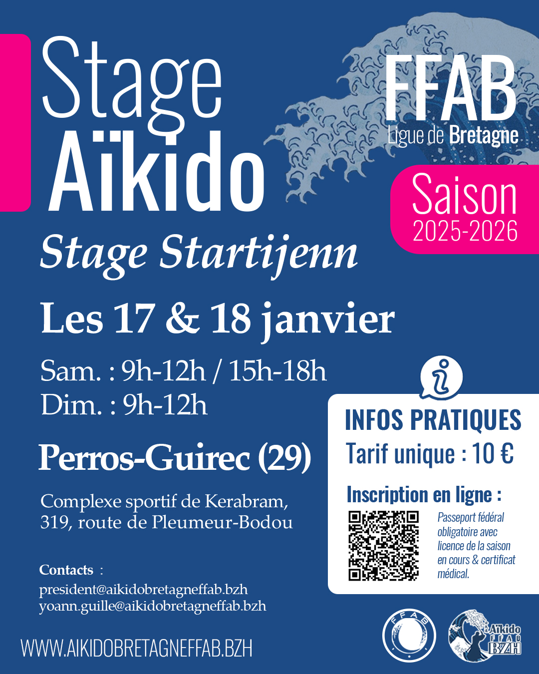 Startijenn (énergie en breton) est un stage de la Ligue de Bretagne, créé en 2016, qui vise à renforcer les liens entre jeunes enseignants et pratiquants. Sa formule favorise la co-animation, le partage d’expérience et l’accessibilité, avec un stage à coût réduit et un esprit convivial. Pensé pour les jeunes pratiquants et débutants, Startijenn propose un cadre bienveillant, moins intimidant, fidèle aux valeurs de camaraderie et d’entraide de l’aïkido.